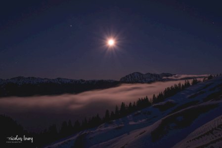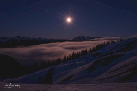 Sortie splitboard avec Julien Sebastian Photographie. Temps moins dégagé qu’annoncé. Tant pis pour les photos d’étoiles. Quelques trouées de lumière ont tout de même permis de sauver la sortie ! (côté ski, il en manque encore !)